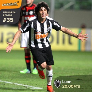 Luan já havia marcado o gol que classificou o Atlético-MG, diante do Flamengo, à final da Copa do Brasil, na vitória por 4 a 1, no jogo de volta da semifinal, no Independência. No mesmo palco e sobre o mesmo rival, o xodó da torcida do Galo marcou dois gols na vitória por 4 a 0, desta vez pelo Brasileirão. A boa exibição fez de Luan o maior pontuador da 35ª rodada do Cartola FC, com 20.00 pontos. Outro destaque da rodada foi um volante da Chapecoense, na goleada por 4 a 1 sobre o Fluminense, em pleno Maracanã. O volante Bruno Silva anotou duas bolas na rede e levou a segunda maior pontuação: 19.50.